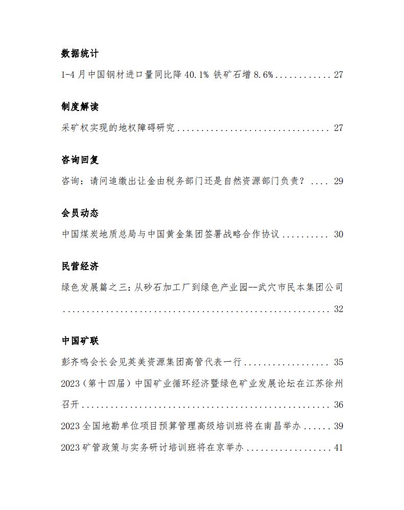 中國礦業(yè)網:2023年5月8日—5月12日《中國礦業(yè)信息》第十六期
